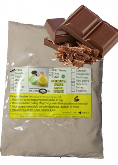Pudding dengan rasa coklat dan campuran susu yang berkualitas.