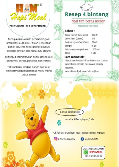 Hepi Meal, Produk unggulan bubur bayi sehat, & MPASI terbuat dari beras organik, daging probiotik dan sayur organik yang bersertifikat Halal MUI no 07050055461218